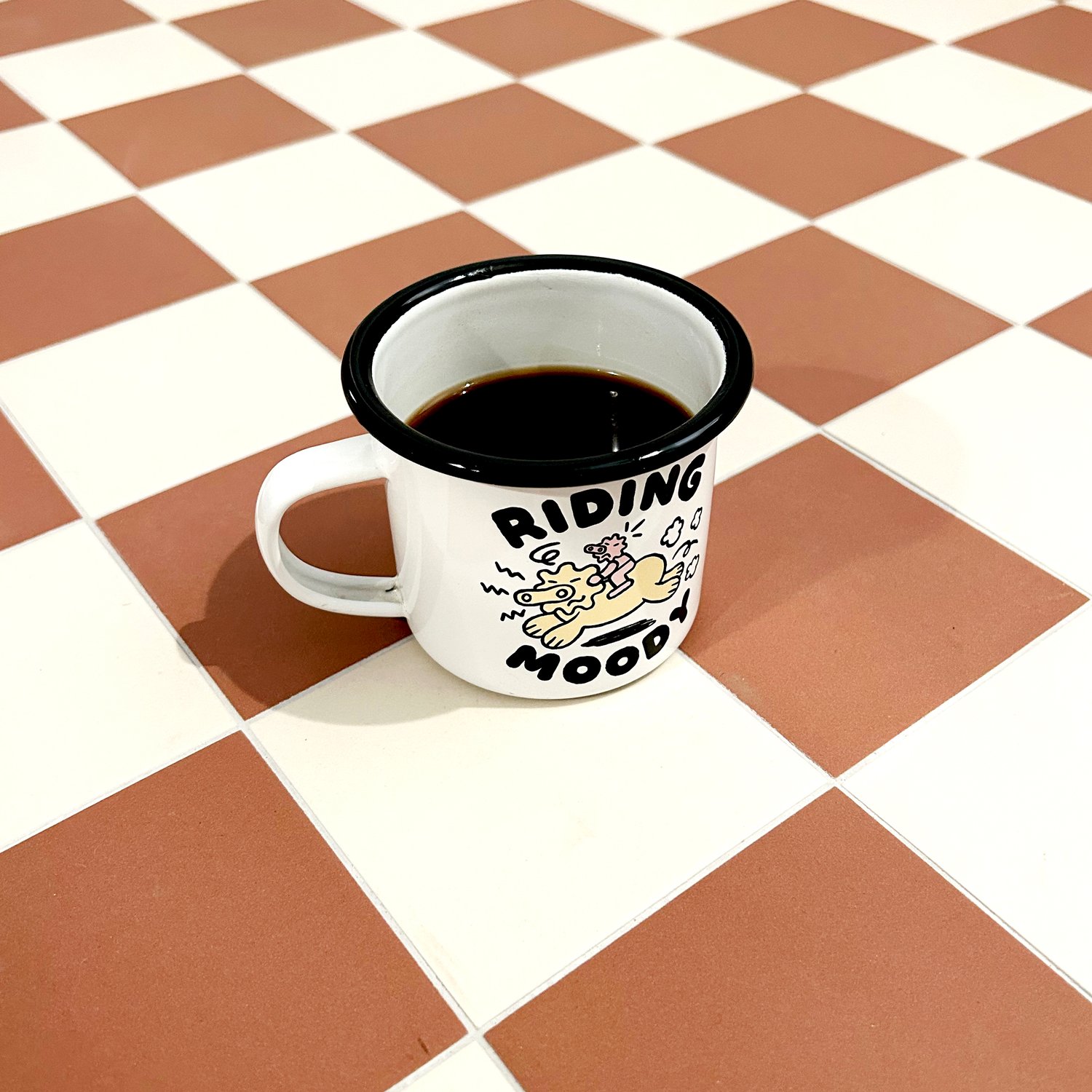 The Cranky Club's "Riding Moody" enamel cup, that's what's up.