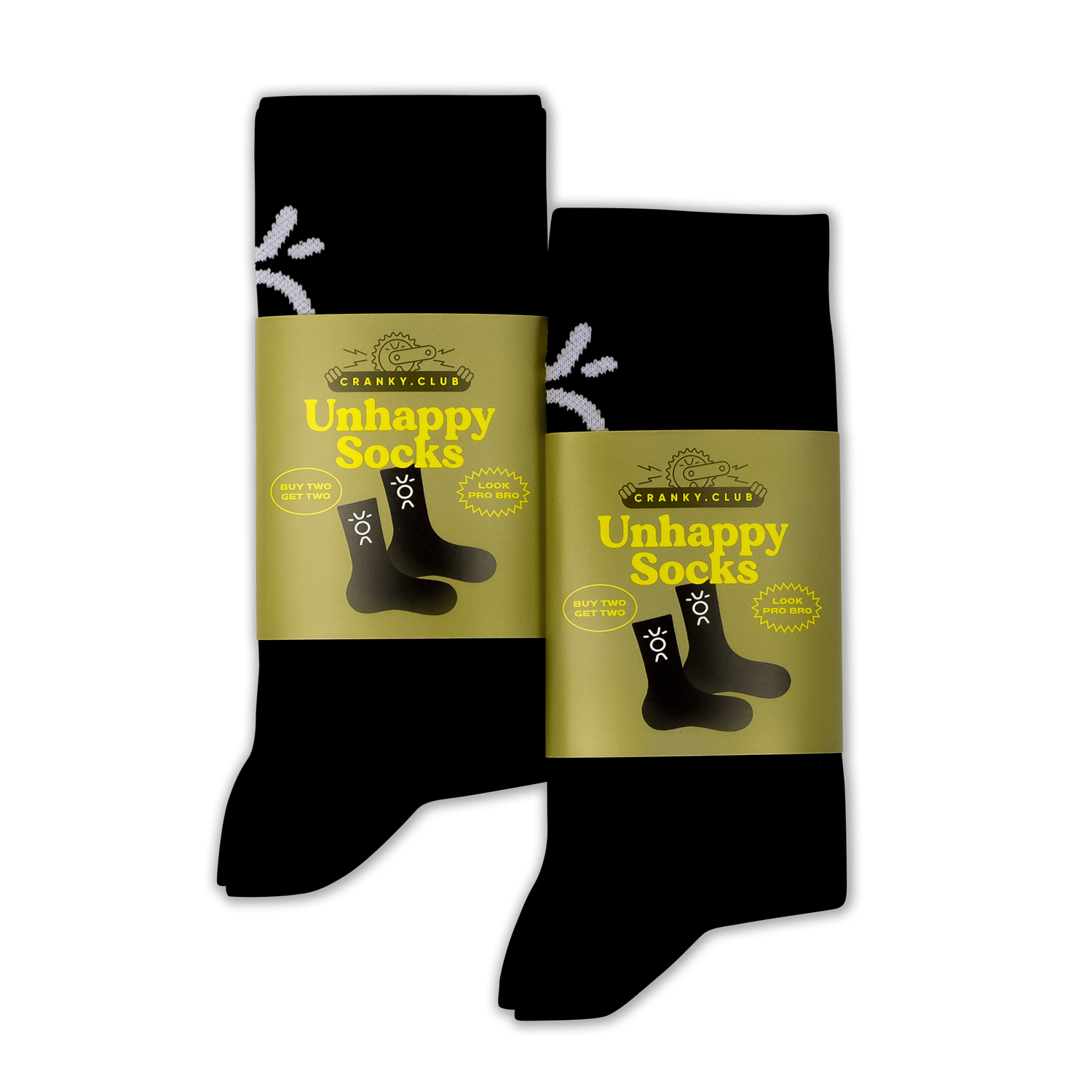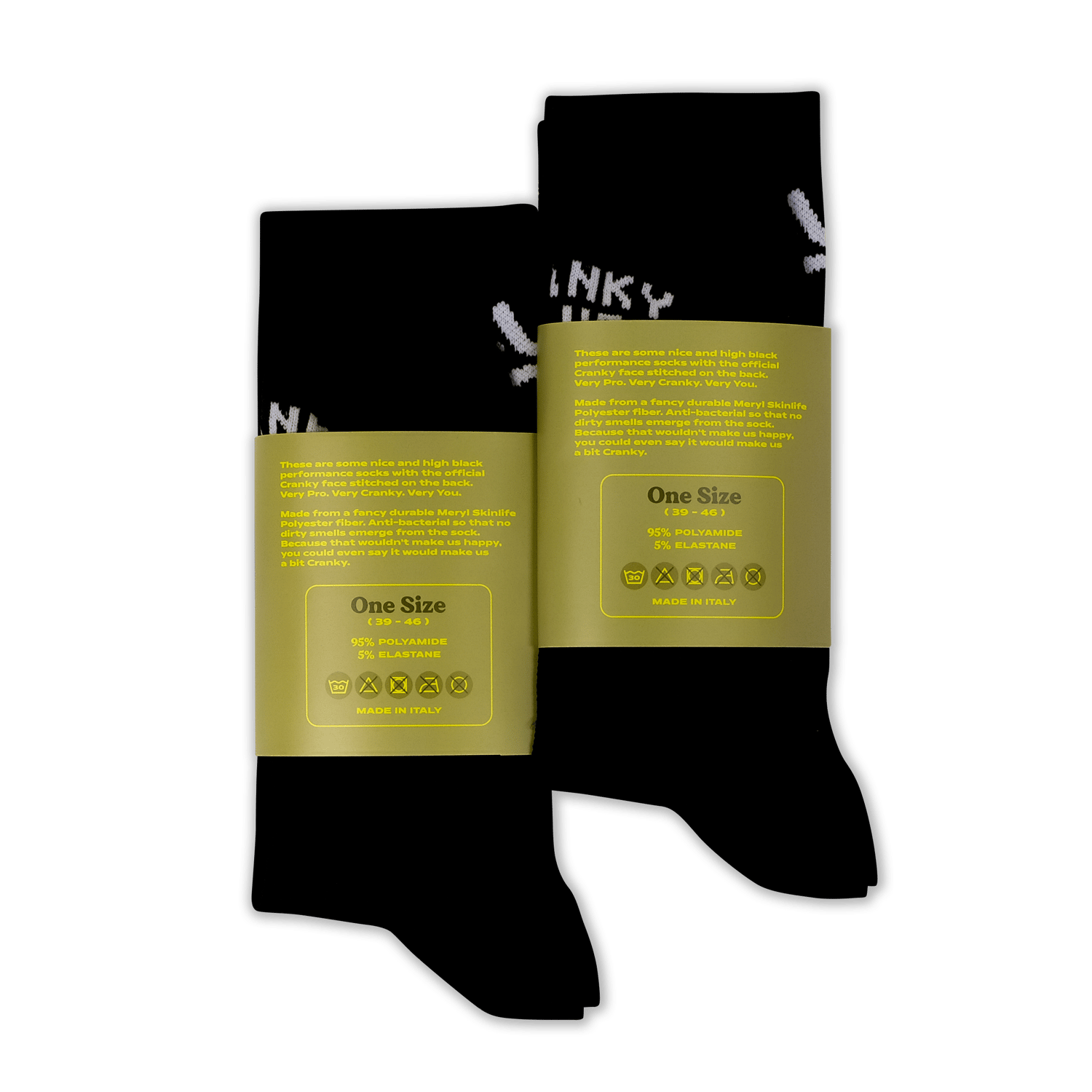 These are some nice and high black performance socks with the official Cranky face stitched on the back.